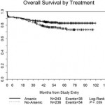 Les patients de tout risque ont bénéficié de l’arsenic et on constate que la DFS pour les patients à haut risque traités par arsenic est la même que pour les deux autres groupes…